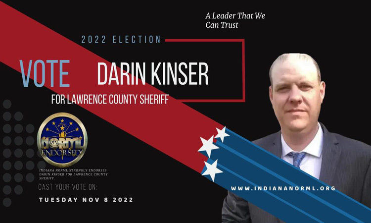 Indiana NORML endorses Darin Kinser for Lawrence County Sheriff.